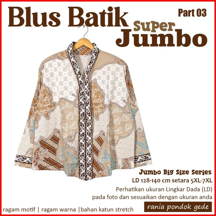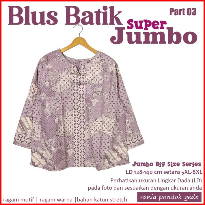 Blouse Batik Modis Jumbo Big Size 5l Ld 130 135 Dan 140 Cm Katun Stretch Halus Part Iii