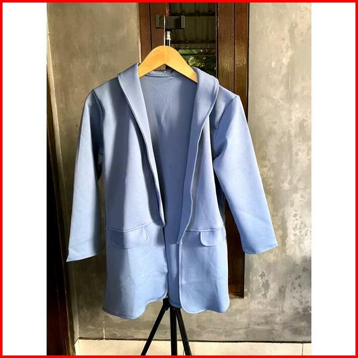 Blazer Panjang Kerah Premium Blazer Wanita Tanpa Kancing Nyaman Scuba