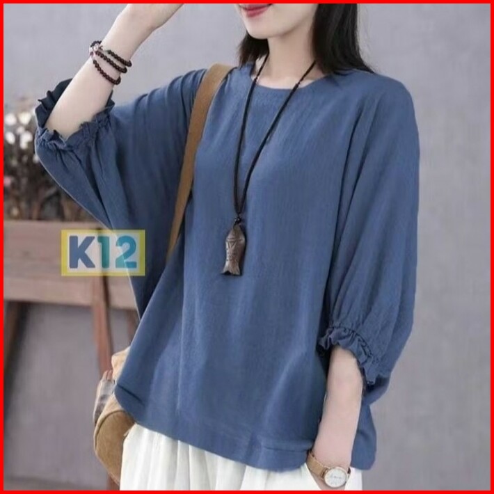 Blouse Wanita Adele Batwing Crinkle Korean Style Fit Jumbo