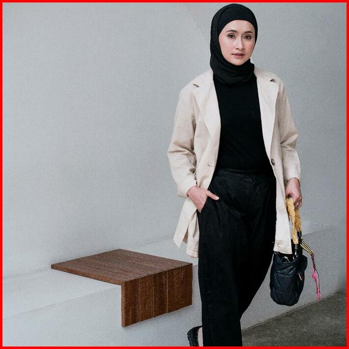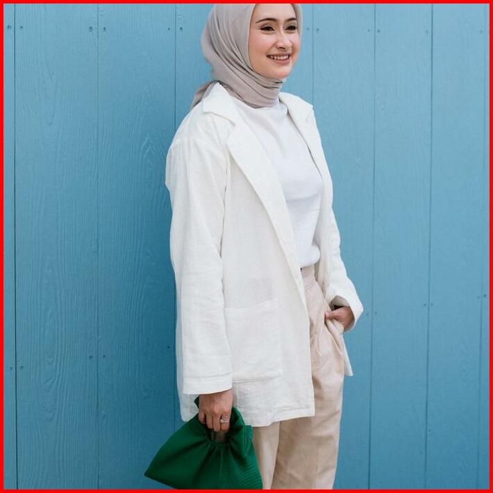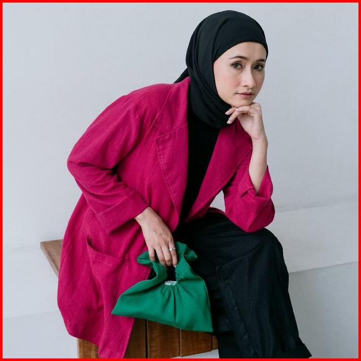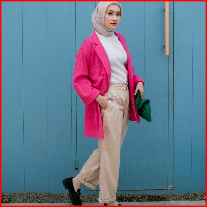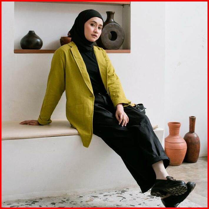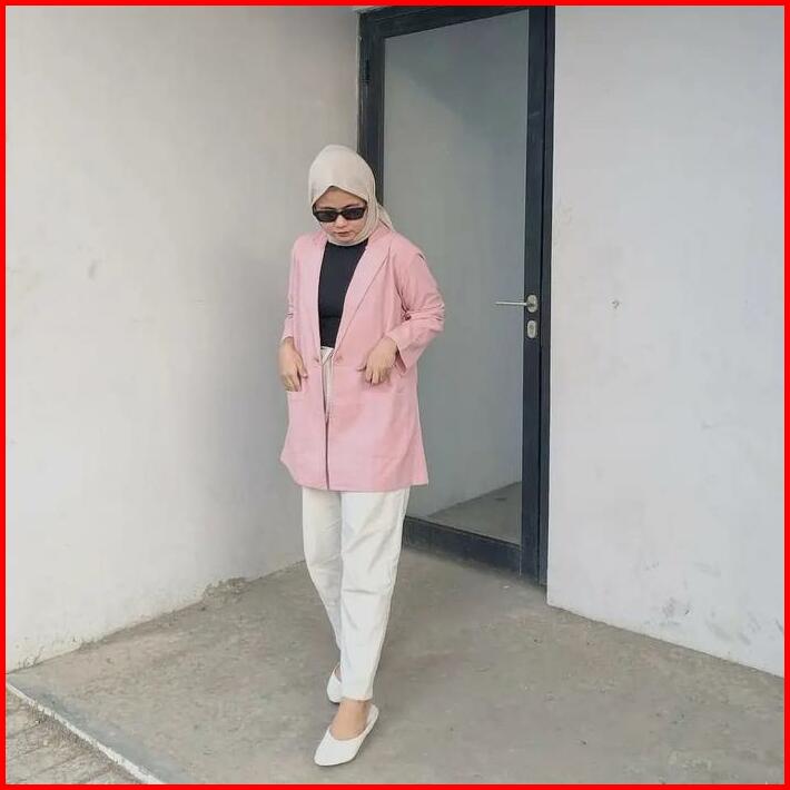 Pure Blazer Outer Linen Korea Oversize Big Size Jas Wanita Semi Tebal Basic Formal Atasan Crinkle Hitam Kerja Panjang Ka