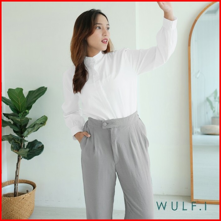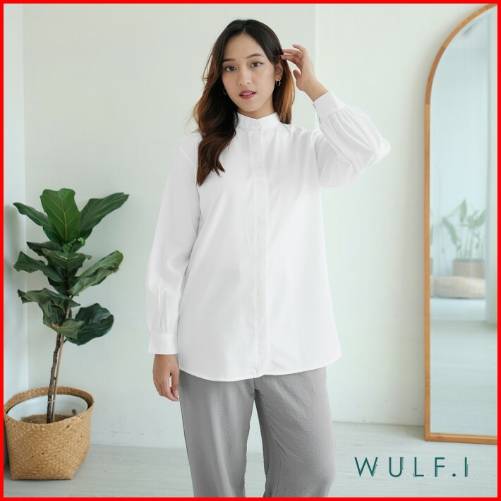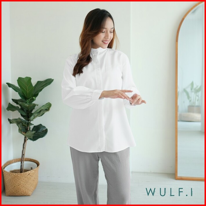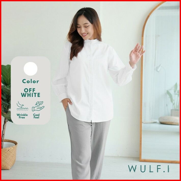 Wulfi Atasan Kemeja Kingpin Putih Off White Kemeja Lengan Panjang Kantor Kasual Blouse Kemeja Jumbo