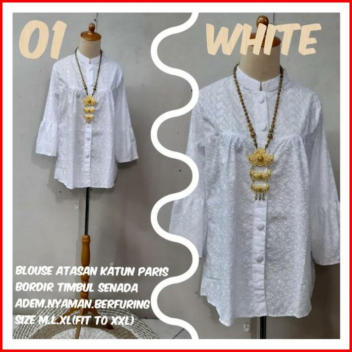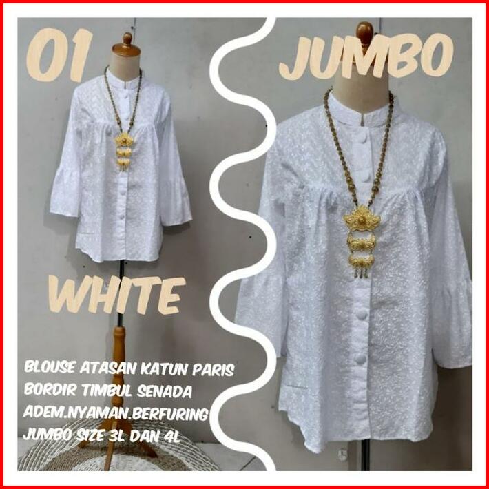 Blouse Atasan Katun Paris Bordir Adem Putih Busui Size M.l.xl Fit To Xxl Dan Jumbo Size 3l.4l Fit To 5l