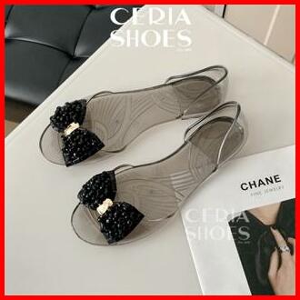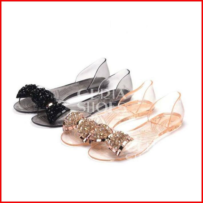 Sepatu Flat Jelly Shoes Wanita Karet Jelly Import Pita Diamond Summer 186