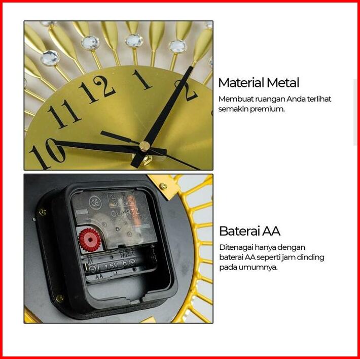 Jam Dinding Aesthetic Creatuve Luxury Diamond 3d Jam Unik Bahan Metal Jam Dinding Besar Alarm Wall-mounted