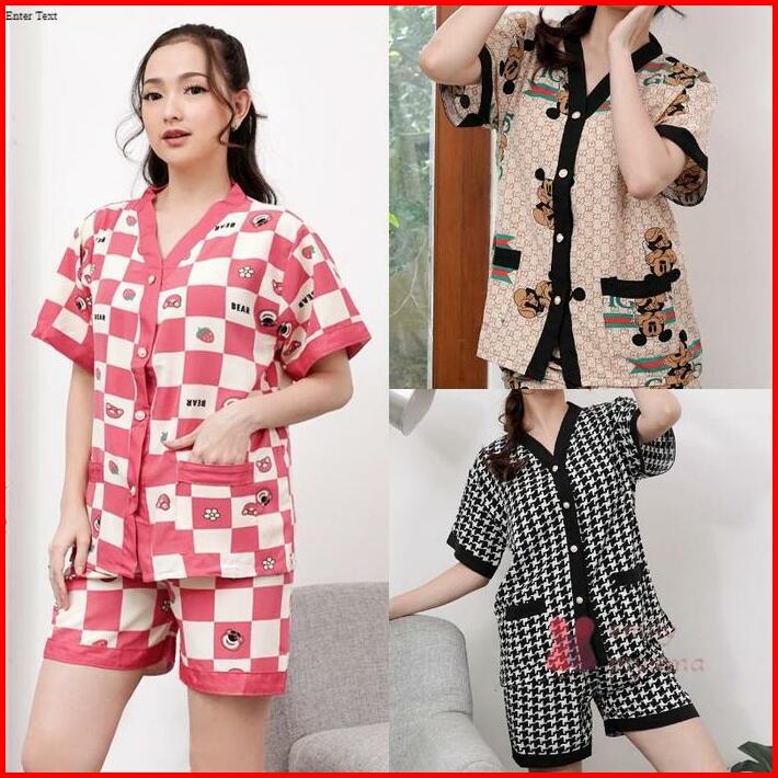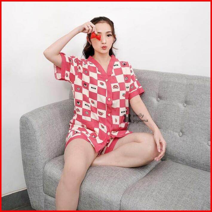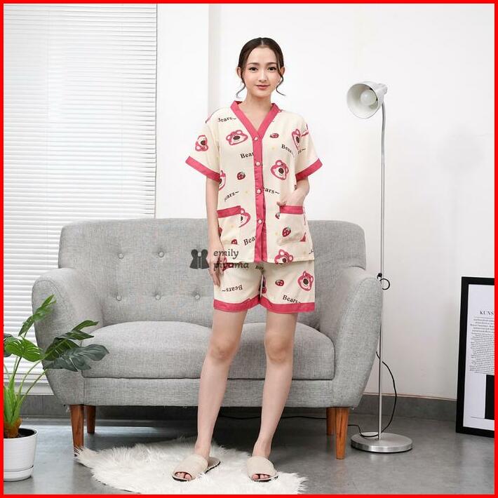 Emily Piyama Baju Tidur Set Piyama Model Kancing Depan Lengan Pendek Celana Pendek Premium Pakaian Tidur Wanita Dewasa F
