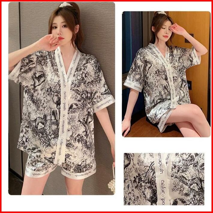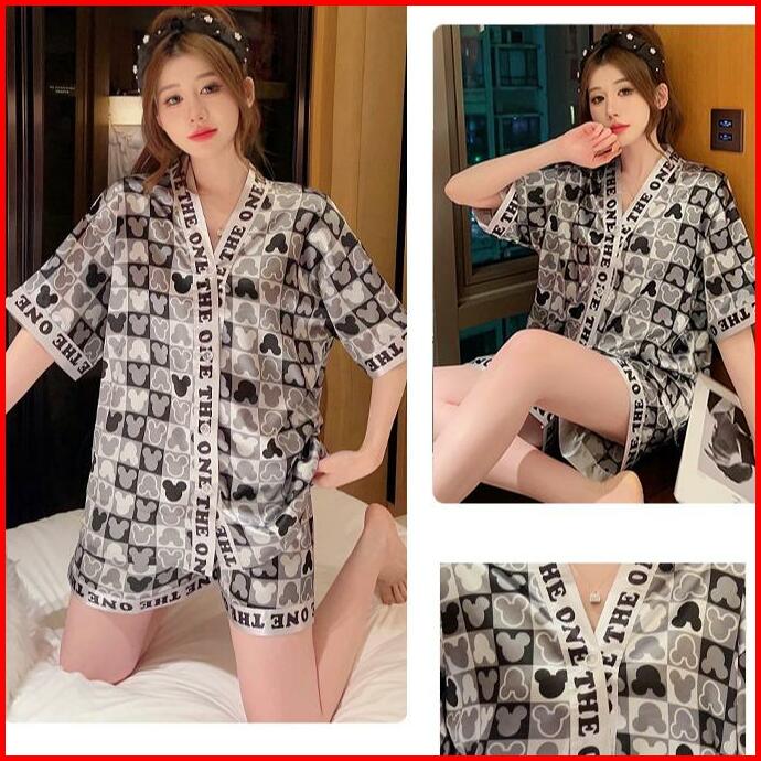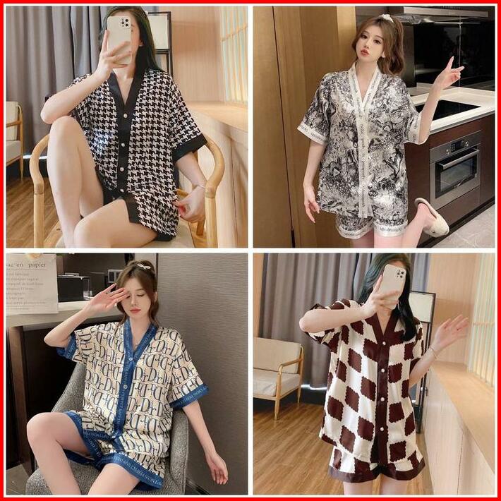 Piyama Wanita Kancing Depan Baju Tidur Wanita Best Quality Satin Murah Mewah Elegan Piyama Satin Fit Piyama One Set