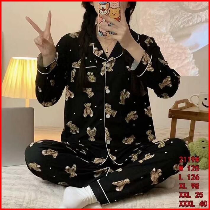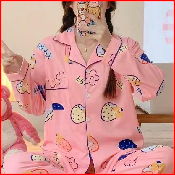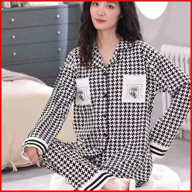 Set Piyama Wanita Dewasa Baju Tidur One Set Piyama Wanita Setelan Kerah Kancing Katun Baju Tidur 13 10 2024 Panjang