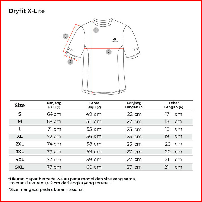 Tiento Kaos Olahraga Lari Baju Running Gym Dry Fit X-lite Pria
