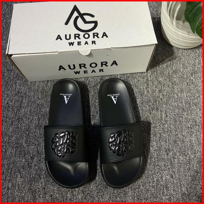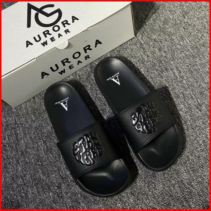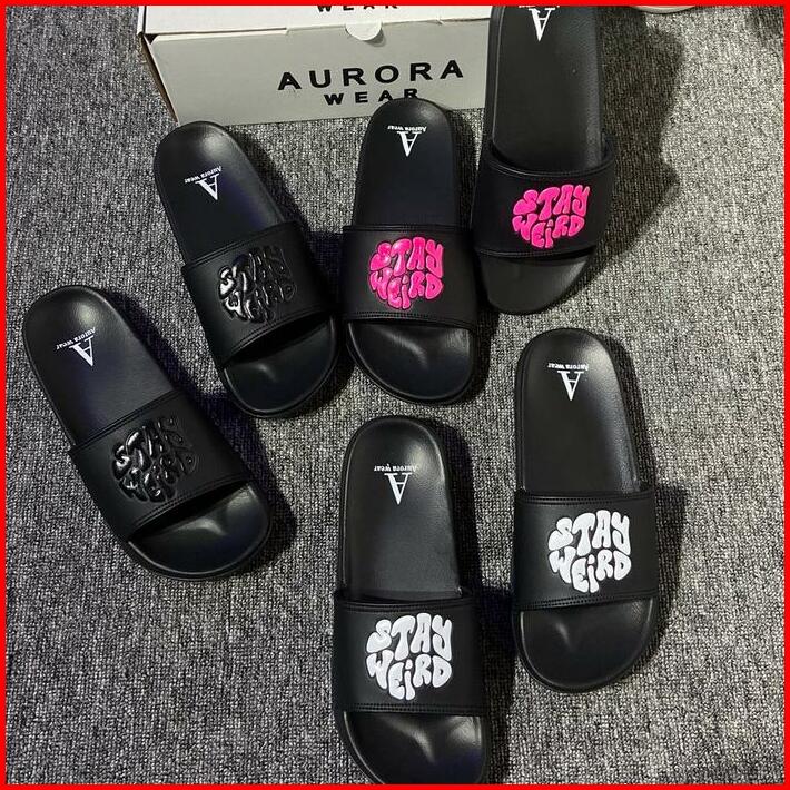 Sendal Slop Pria Wanita Stay Weird All Black Aurora Wear