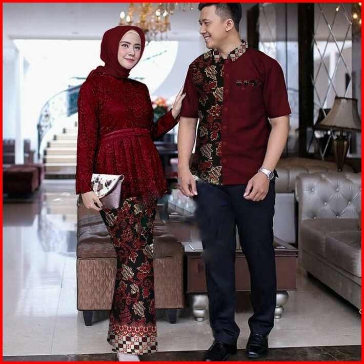 Baju Couple Batik Cp Sarimbit Pasangan Brukat Kebaya Pesta Kondangan