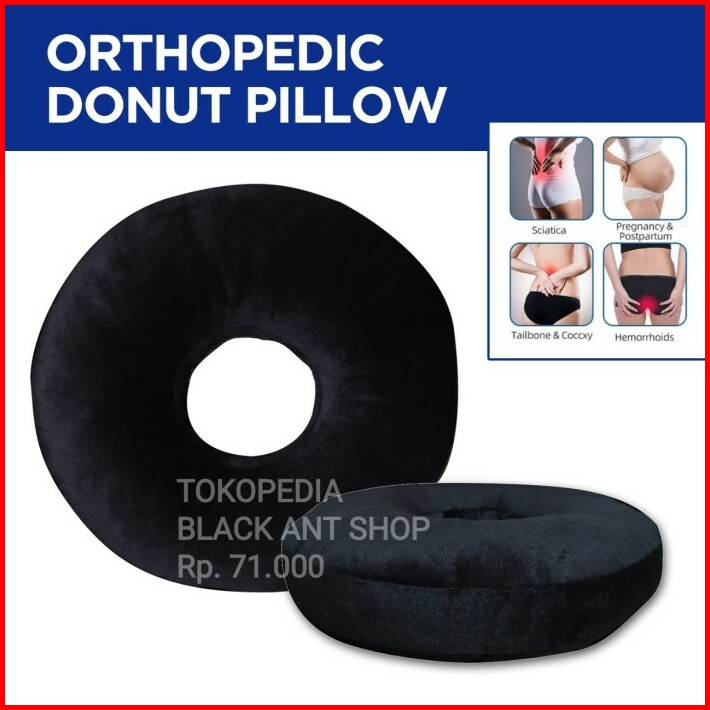 Bantal Duduk Alas Bulat Donat Kesehatan Tulang Ekor Pegal Hitam