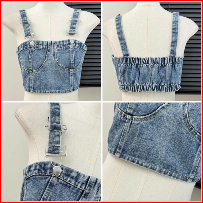 Jeans Tank Bebe Denim Crop Top Pendek Wanita Mx129