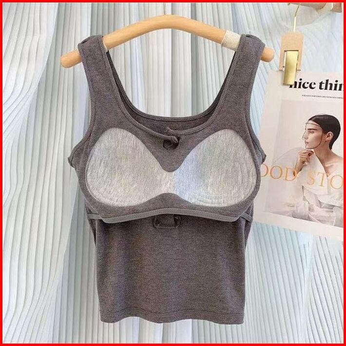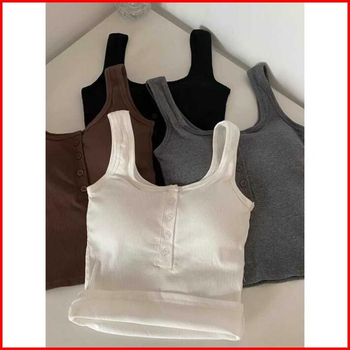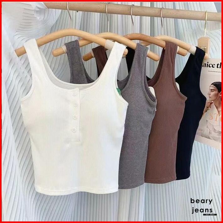Beary Jeans Bj208 Button Tank Top Bra Casual Daily Pakaian Dalam Wanita Crop Tanktop Bra With Cup Pad Korean Style
