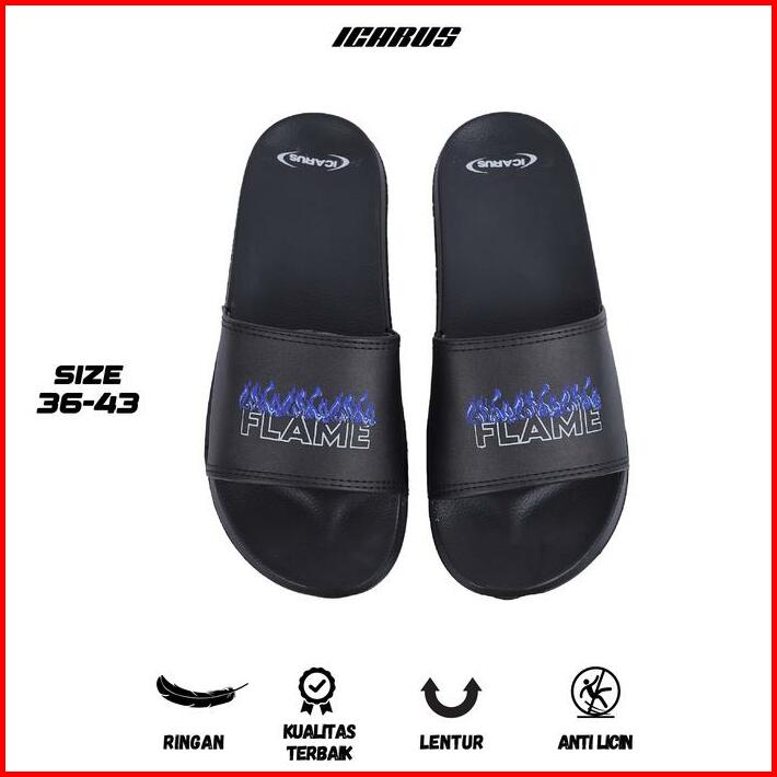 Sandal Slop Flame Pria Wanita Icarus Footwear Sendal Selop Hitam Slide Distro Sendal Api