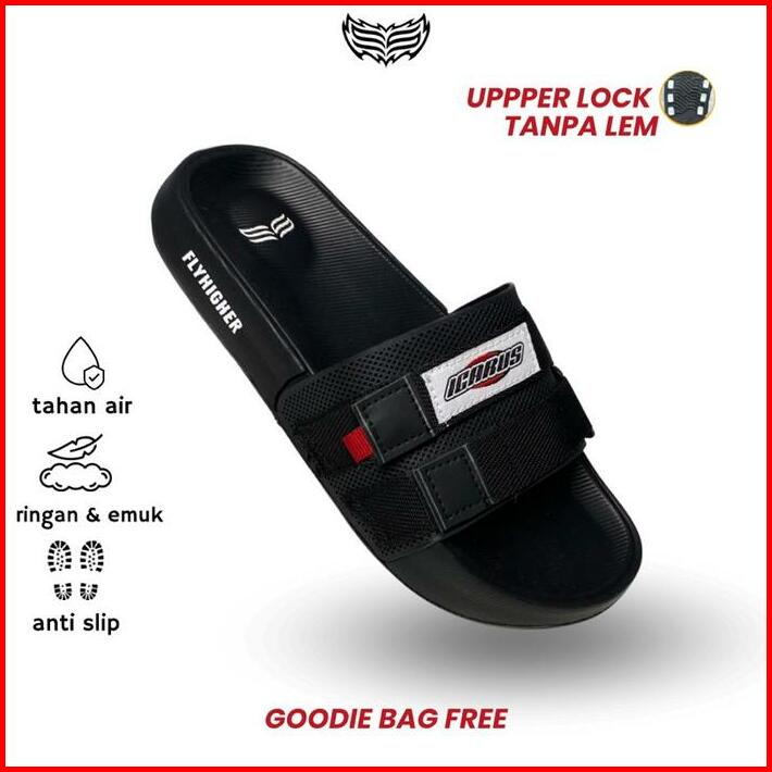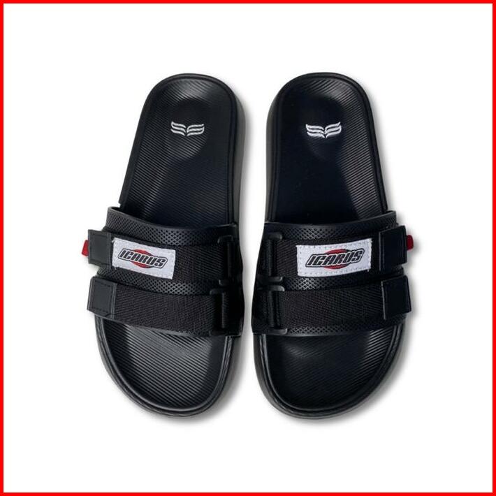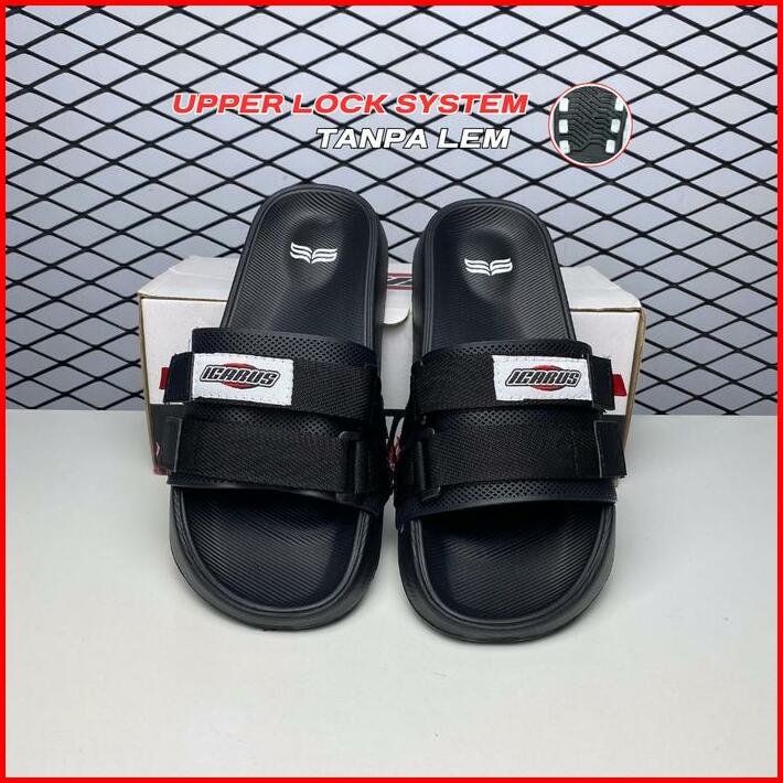 Icarus Sandal Slop Webbing Pria Tanpa Lem Sendal Selop Distro Cowok Kekinian Hitam Original Selop Kasual Shoes Brand Lok