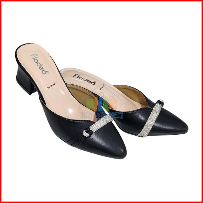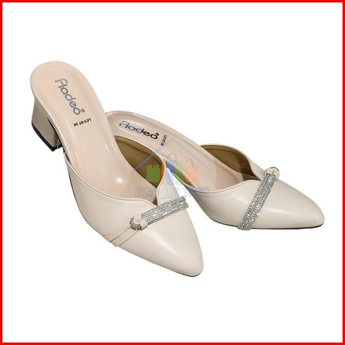 Fladeo Sendal Wanita Slip On Heels Kuba 5cm Motif Belt Mutiara