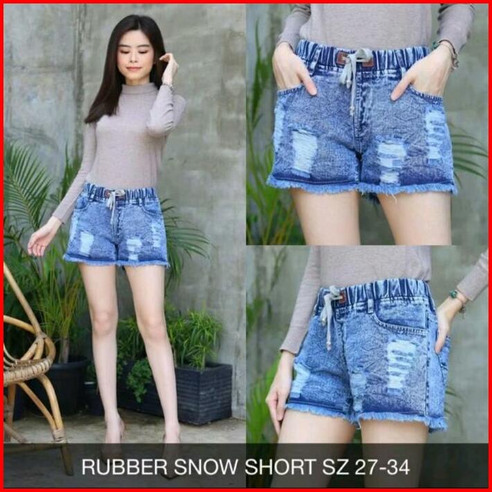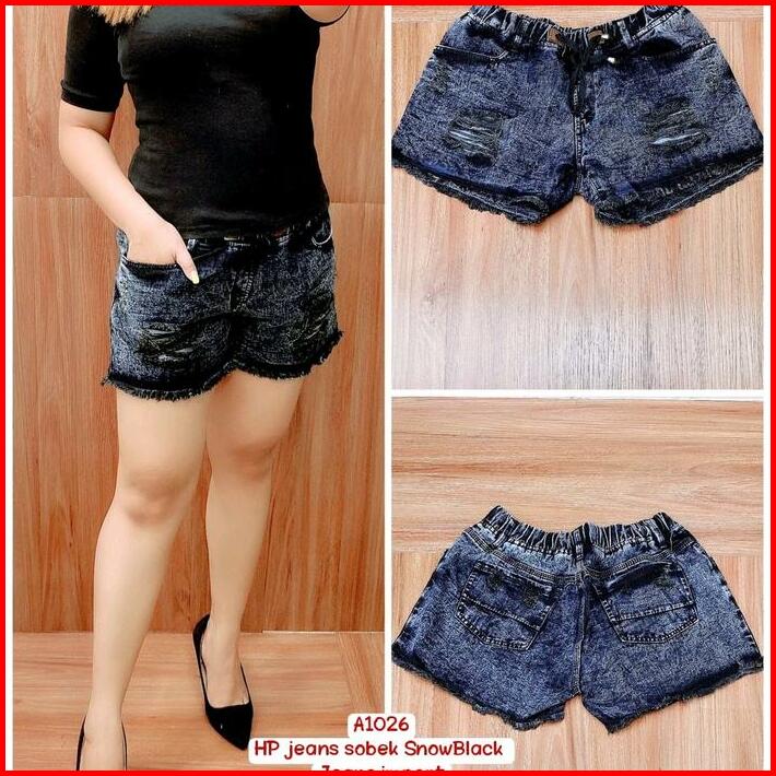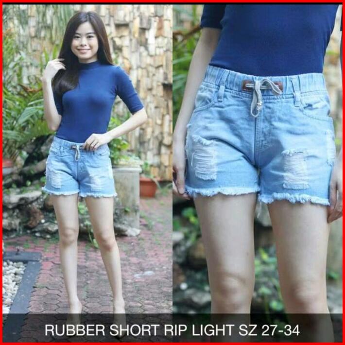 Celana Pendek Hotpants Wanita Light Sobek Size 27-38 Bahan Jeans Non Stretch Celana Pinggang Karet Nyaman Di Pakai Tali