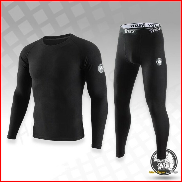 Baju Sport A157 One Set Hitam Baju Olahraga Pria Baju Bahan Poliester Lebut Kaos Lengan Panjang Baju Outdoor Pria