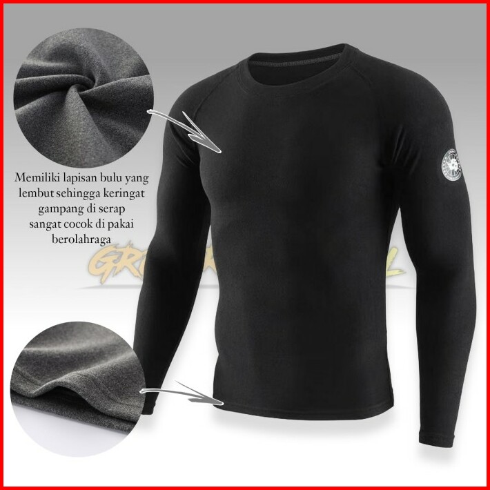 Baju Sport A157 One Set Hitam Baju Olahraga Pria Baju Bahan Poliester Lebut Kaos Lengan Panjang Baju Outdoor Pria