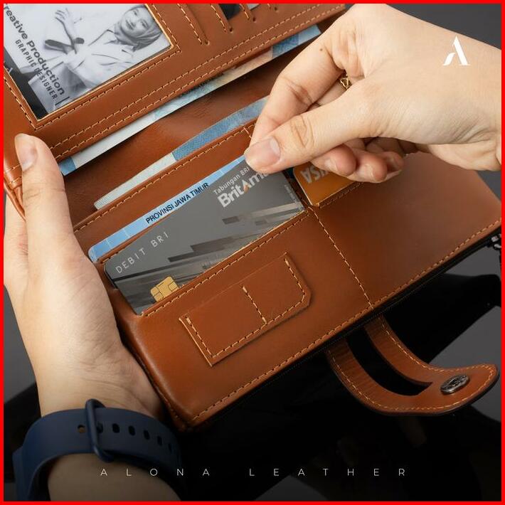 Alona Leather Dompet Panjang Wanita Kulit Bahan Sapi Asli Geisha Wallet