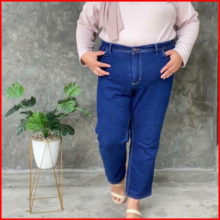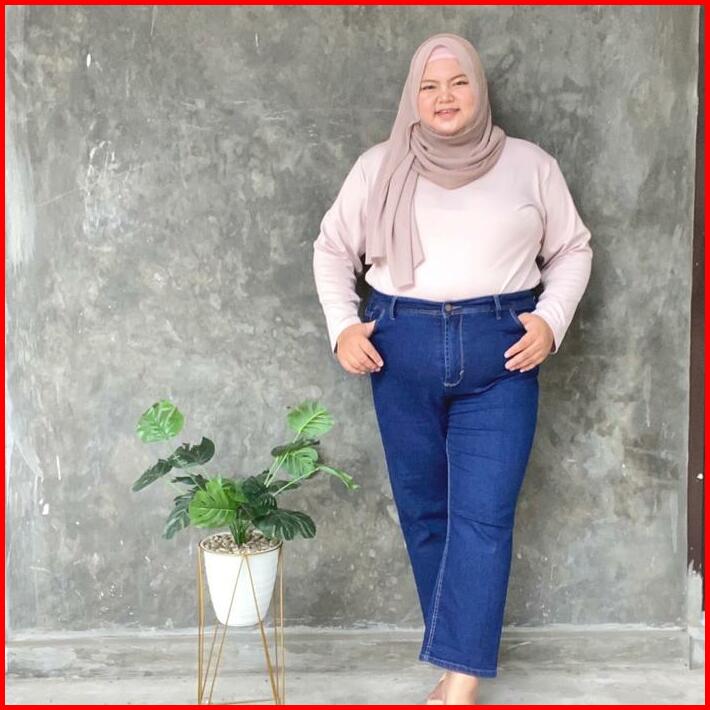 Celana Jeans Melar Jumbo High Waise- Bawahan Wanita Bigsize-by Omah Muslim