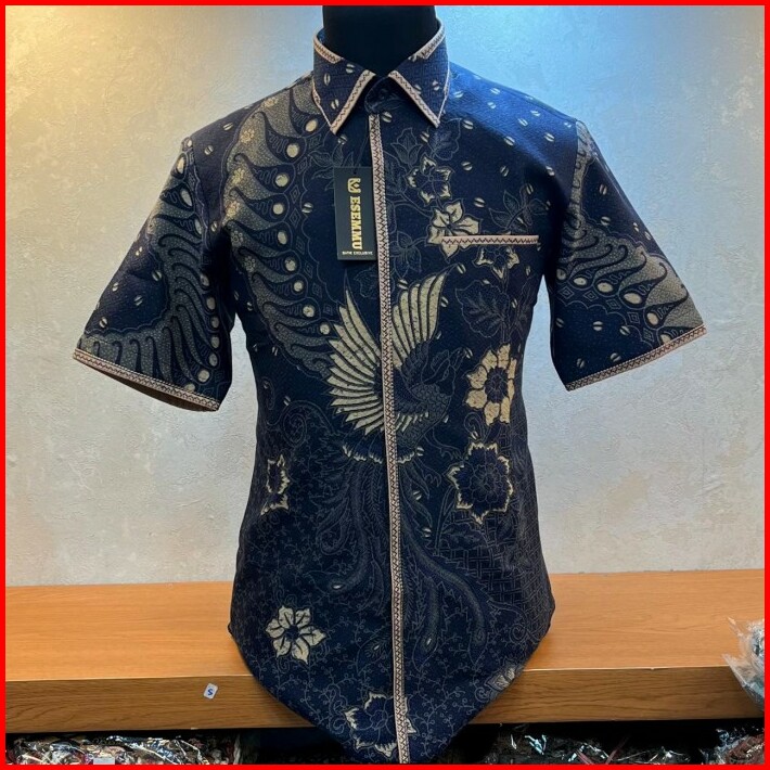 Kemeja Batik Pria Lengan Pendek Bahan Dobby Combinasi Jaitan Smock Bordir Semi Jas Exclusive Thamrin City Viee