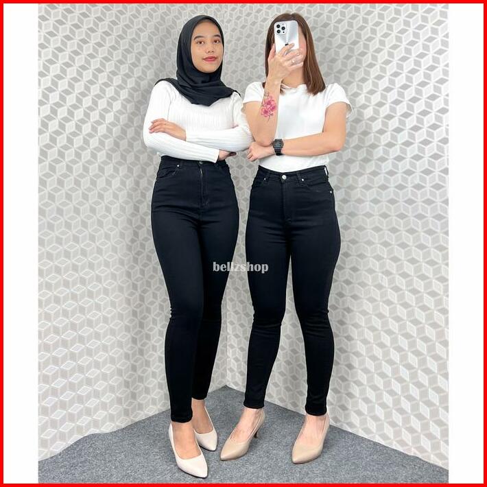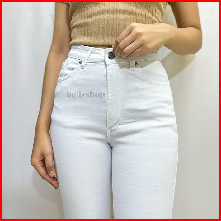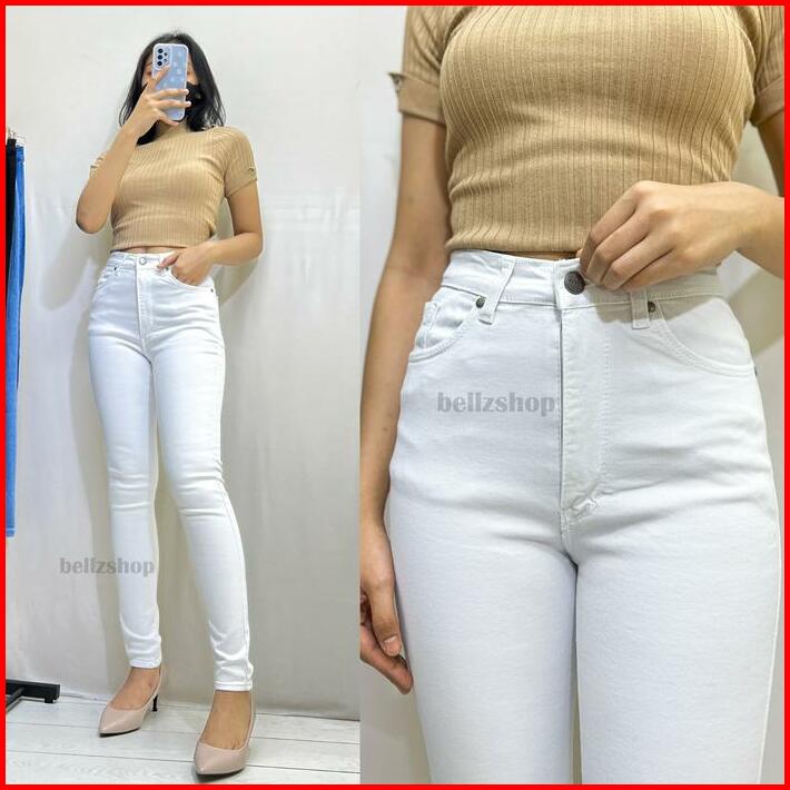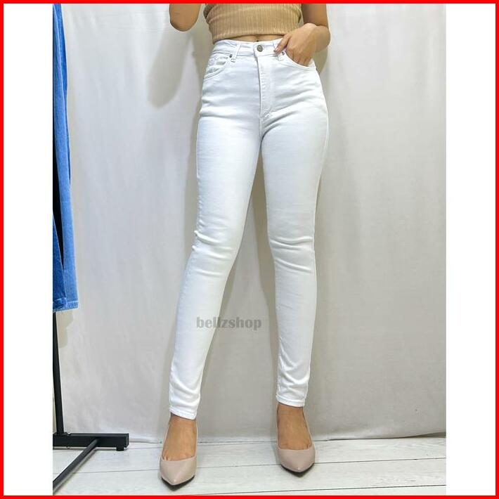 Celana Highwaist Skinny Jeans Putih Wanita Kantong Depan Jumbo Premium 4114