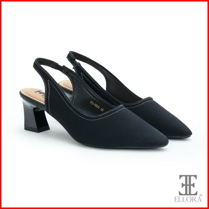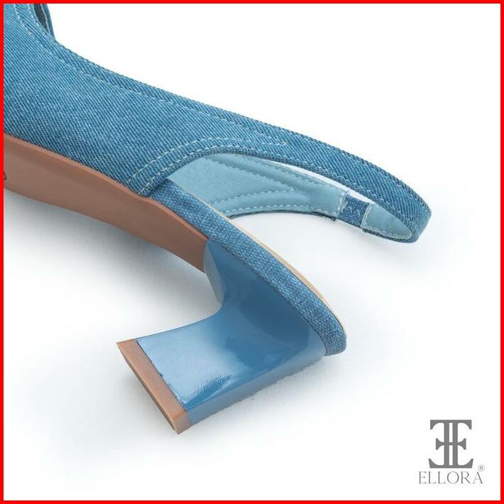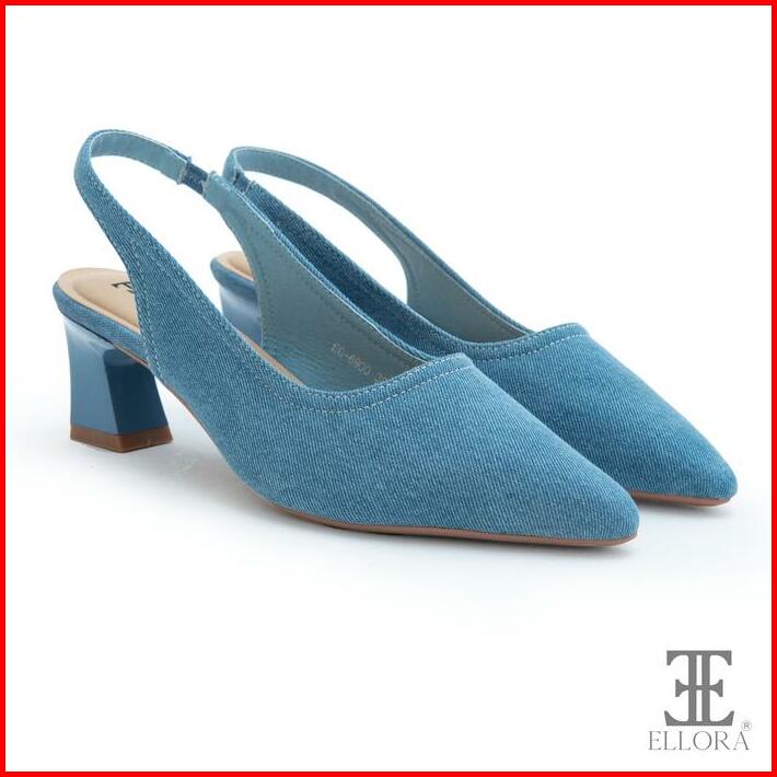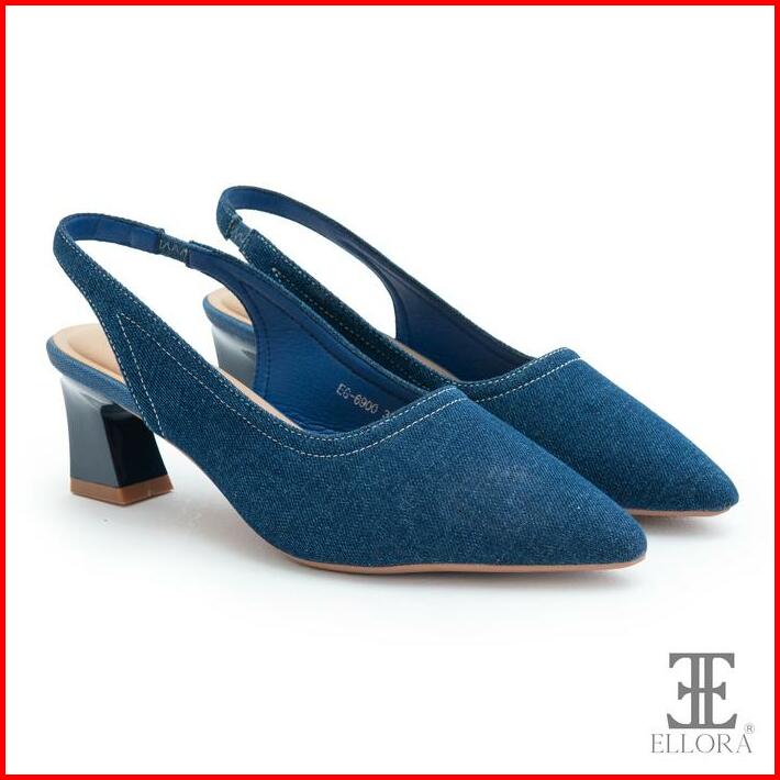 Ellora Eg-6900 Sepatu Wanita Hak Chunky Heels Slingback Bahan Jeans 6.5cm