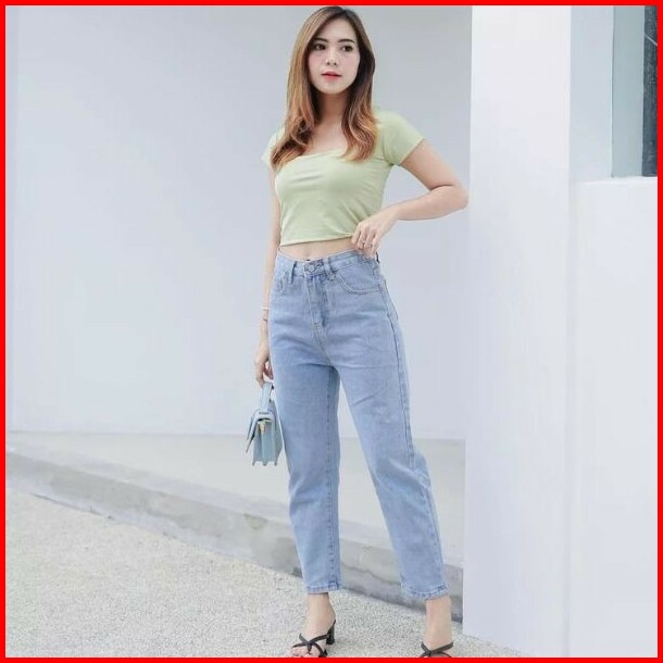 Celana Wanita Jeans Panjang Boyfriend Plane Bhan Non Street Kekinian