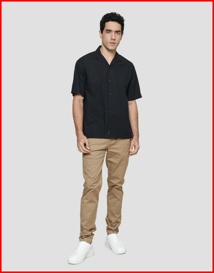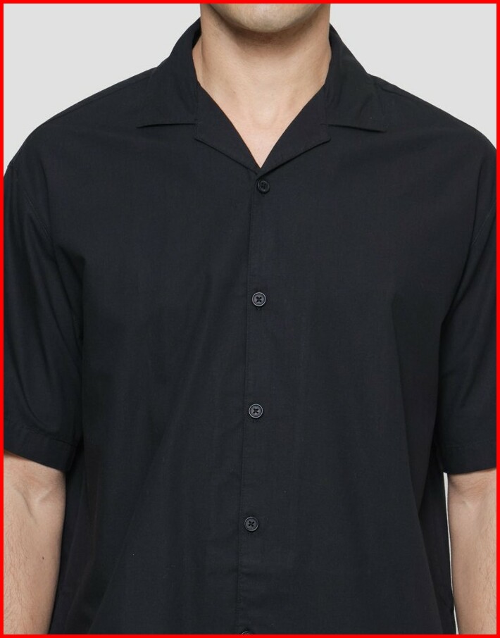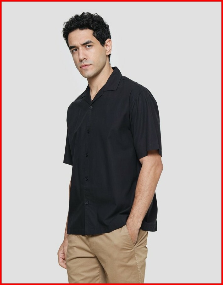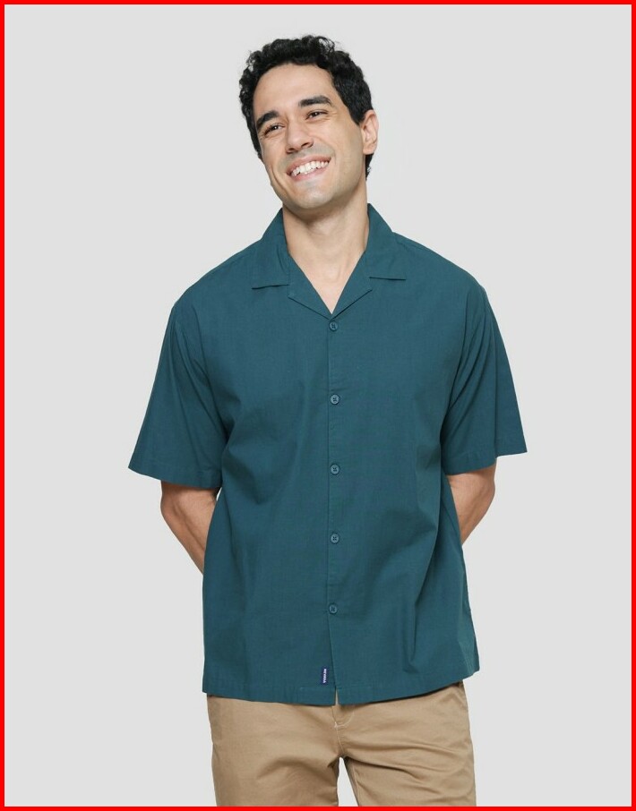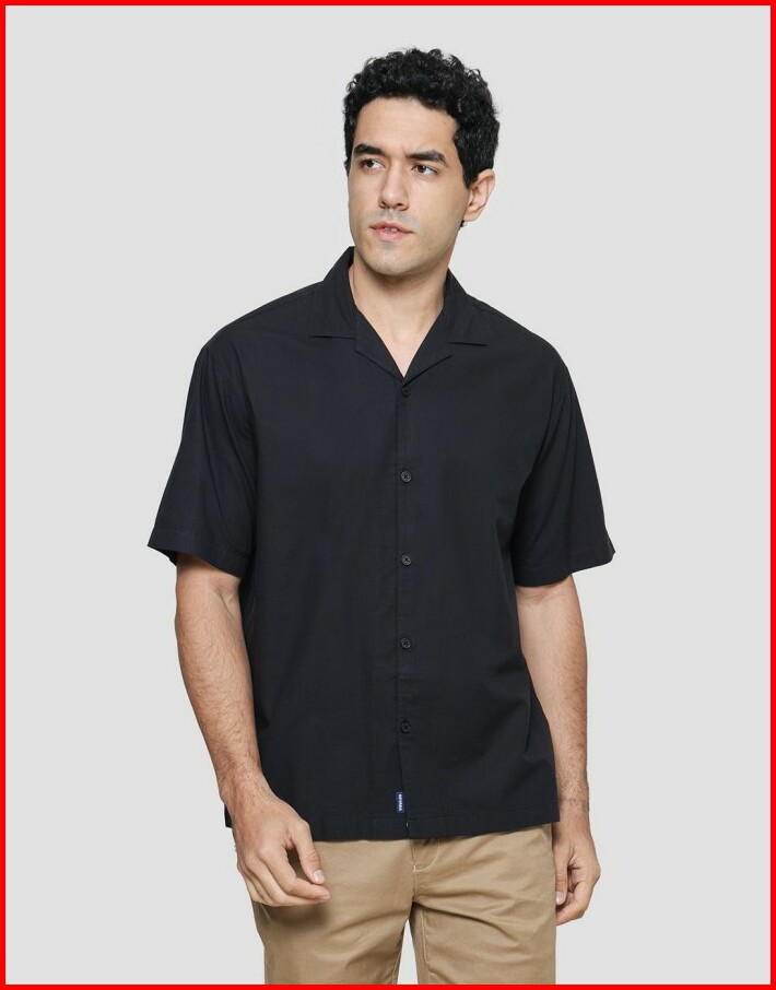 Nevada Cuban Solid Katun Kemeja Lengan Pendek Pria 120994588