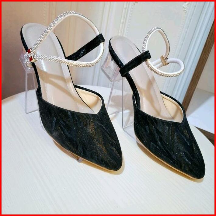 Dcollection Bh 02 Sepatu Pesta Wanita Mules Heels Permata Hak Kaca 5 Cm Wedding Shoes Mewah Karet Sepatu Kaca Korean Hee