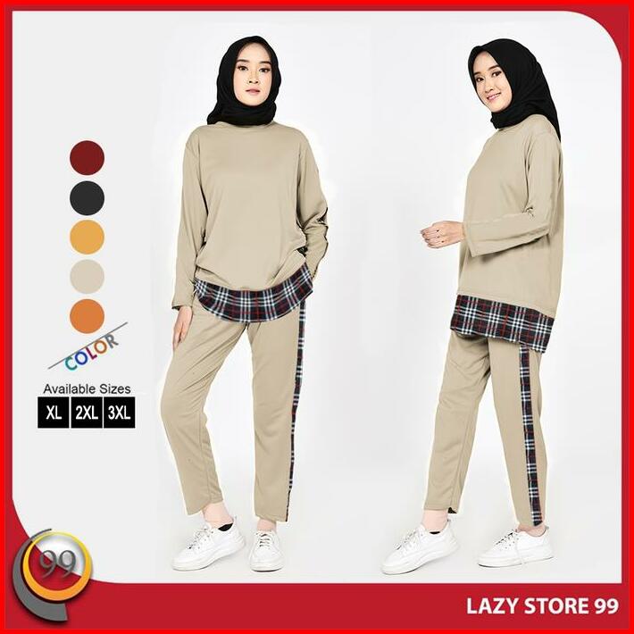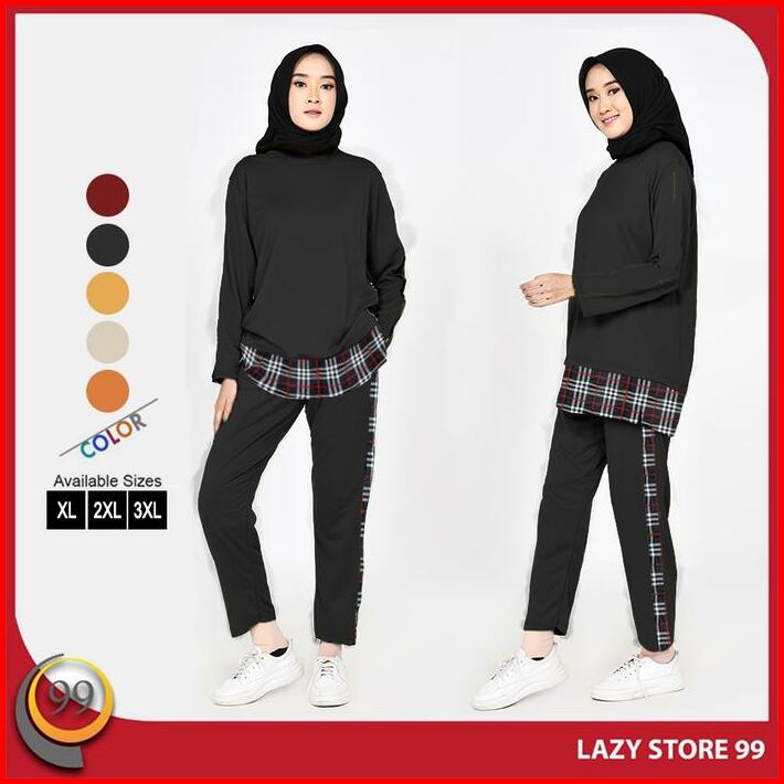 Um Set Setelan Kaos Celana Olahraga Muslimah Training Senam Wanita Lengan Panjang Bahan Babyterry Adem Size Xl Xxl Xxxl