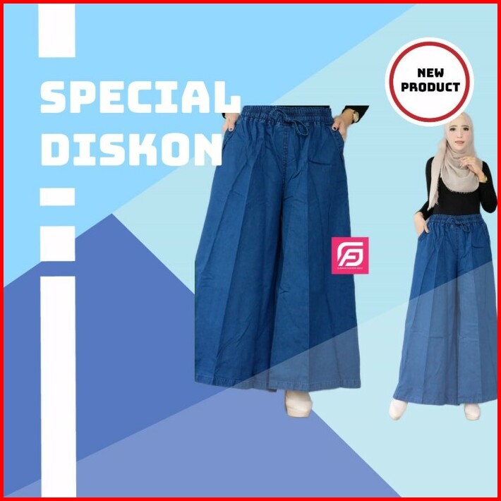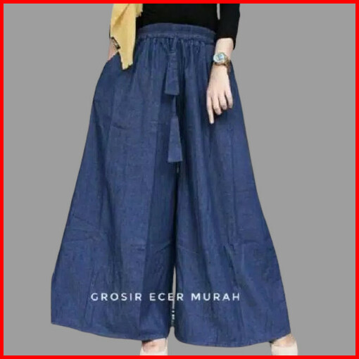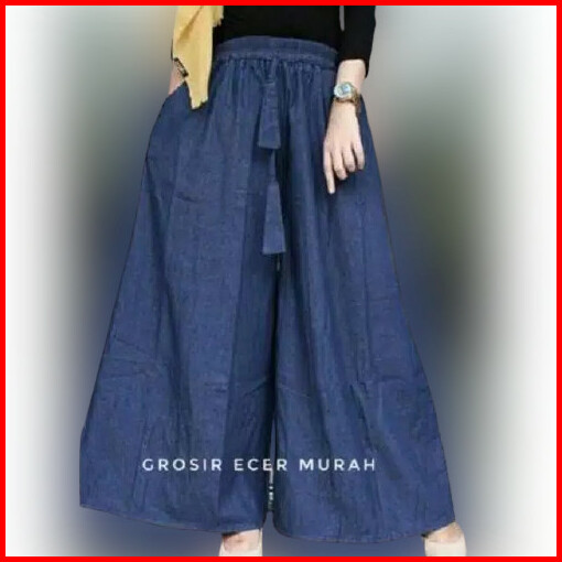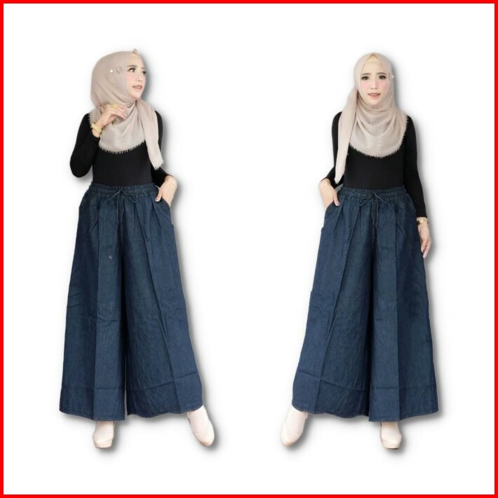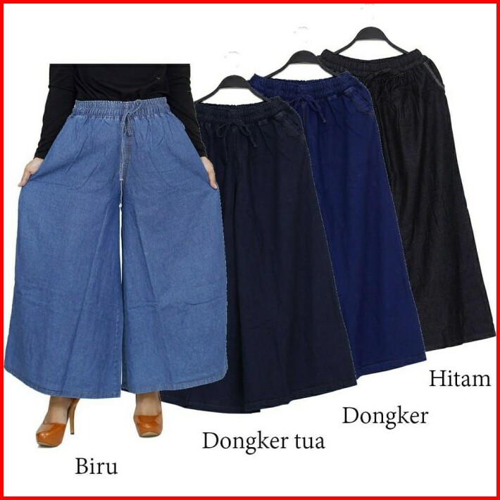 Celana Kulot Jumbo Wanita Berbahan Jeans Tebal Dan Adem Black Navy