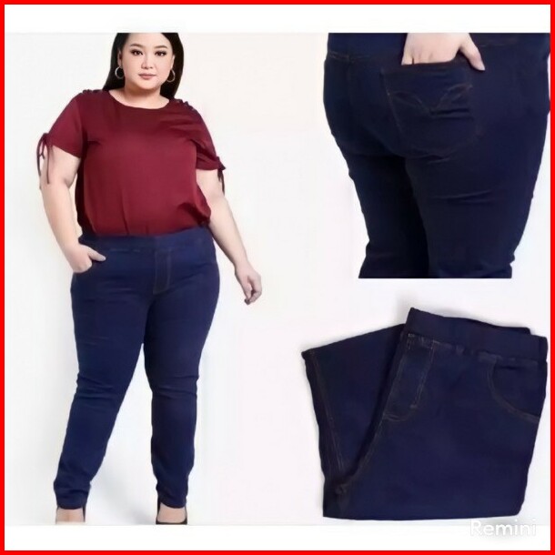 Celana Jeans Wanita Pinggang Karet Size Jumbo