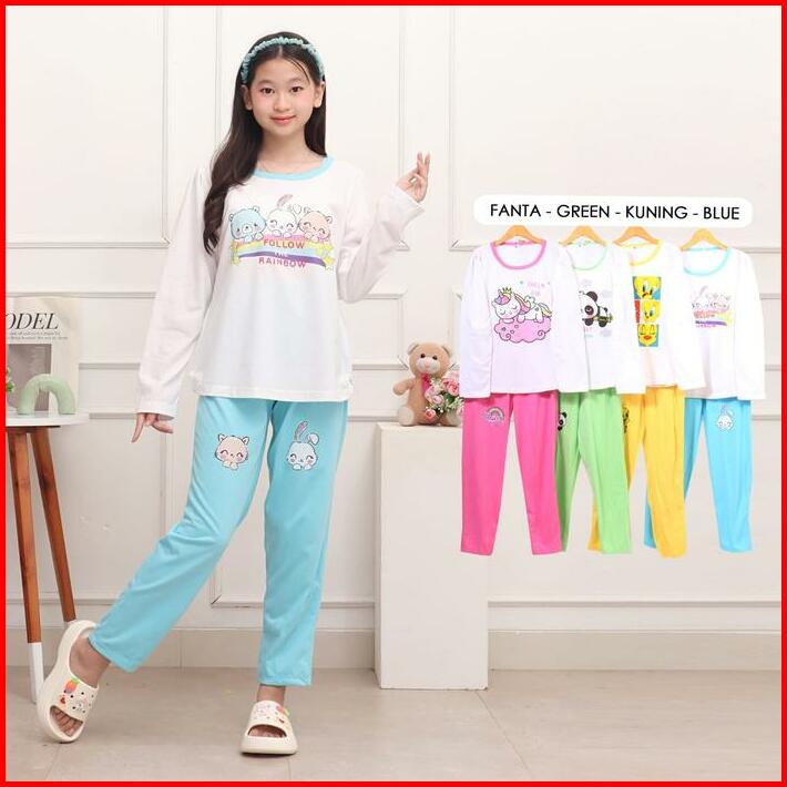 Kimchan Setelan Baju Tidur Piyama Anak Perempuan Motif Lucu 5-12 Tahun Celana Fashion