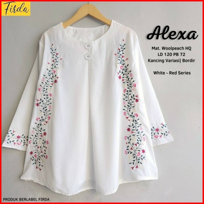 New Alexa Blouse Jumbo Baju Atasan Wanita Big Size White Series Bordir
