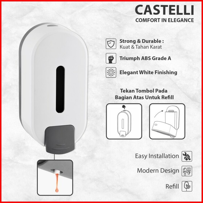 Castelli 1376768-wh Tempat Sabun Cair Single Soap Dispenser