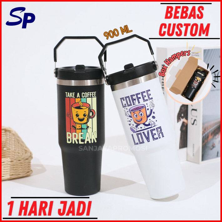 Tumbler Torki Vacuum Flask Insulated Stainless Steel Botol Minum Custom 900ml Free Sedotan