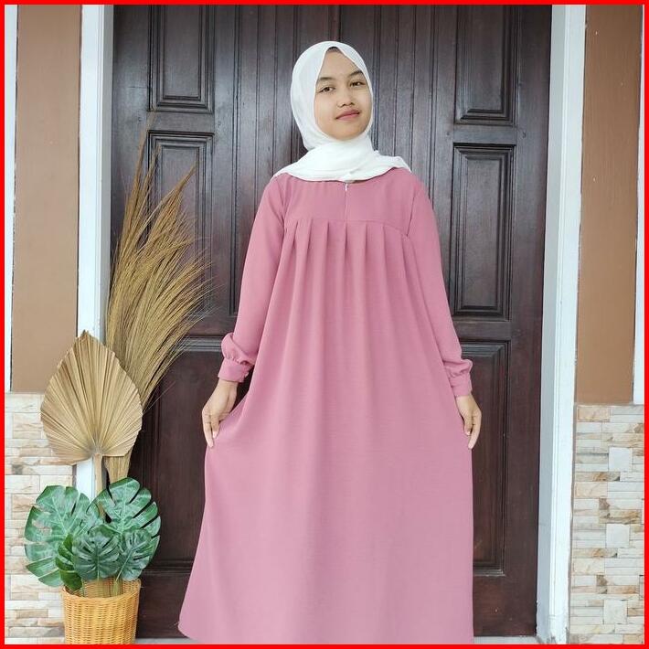 Gamis Anak Perempuan Tanggung Syari Polos Viral Terbaru 2024 Bahan Katun Crinkle Airflow Premium Usia 8-13 Tahun Dress A