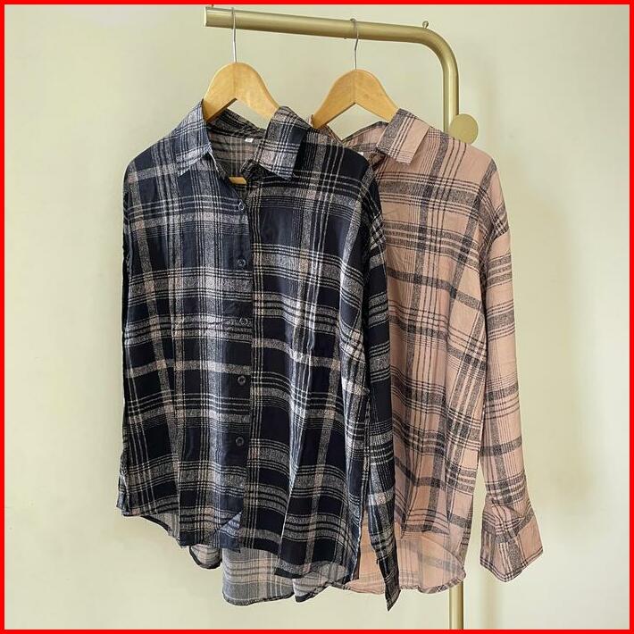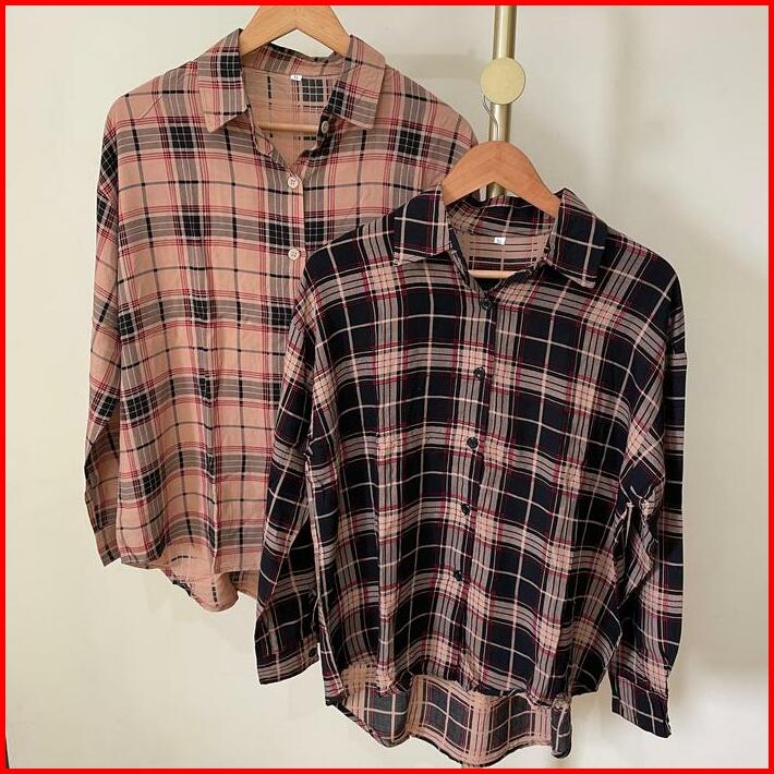 Atasan Kemeja Blouse Wanita Motif Kotak