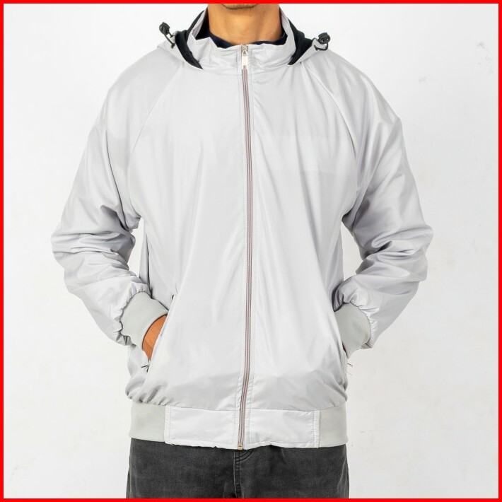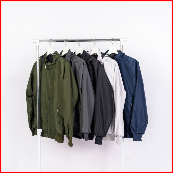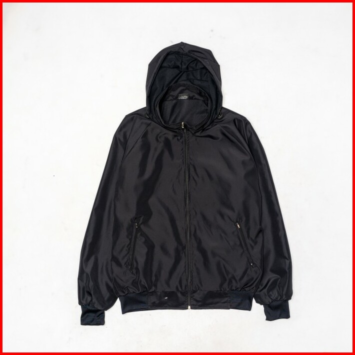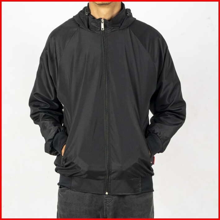 Jaket Parasut Windrunner Olahraga Polos Tanpa Logo Hitam Pria Wanita