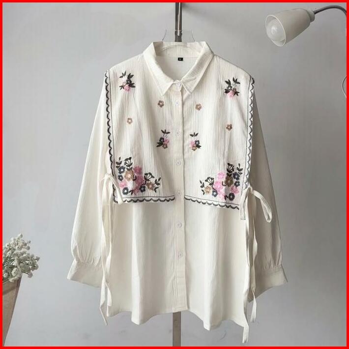 Daeung Blouse Kemeja Bordir Kemeja Kerja Bahan Cotton Salur Big Size Ukuran Size S M L Xl 2xl 3xl 4xl Xxl Xxxl Xxxxl 2l