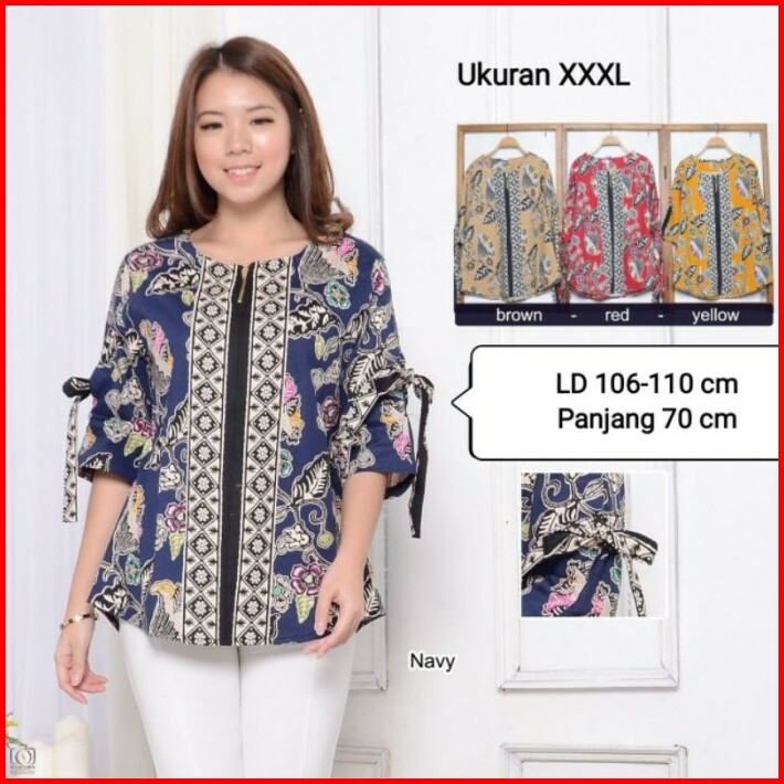 Blouse Batik Wanita Lengan 3 4 Ukuran Xxxl Jumbo Atasan Batik Ab-14