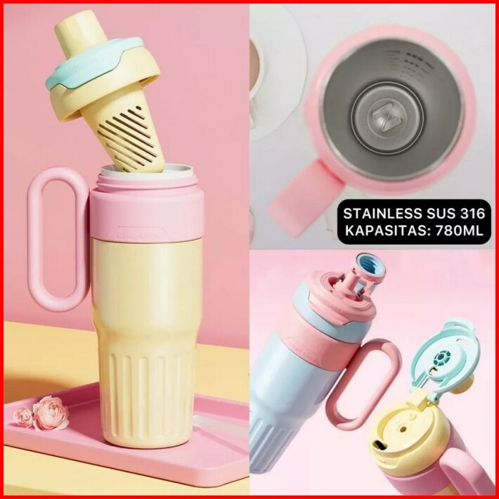 Tumbler Dreamy 2 Cara Minum 780ml Stainless Sus 316 Tumbler Botol 2 Tingkat Cara Minum Tumbler Viral Lucu