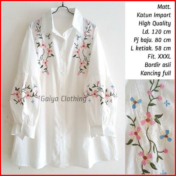 Blouse Atasan Jumbo Bordir Bunga White Series Ld. 120