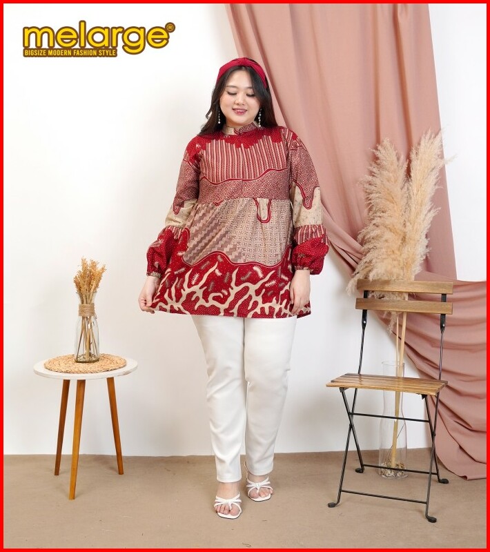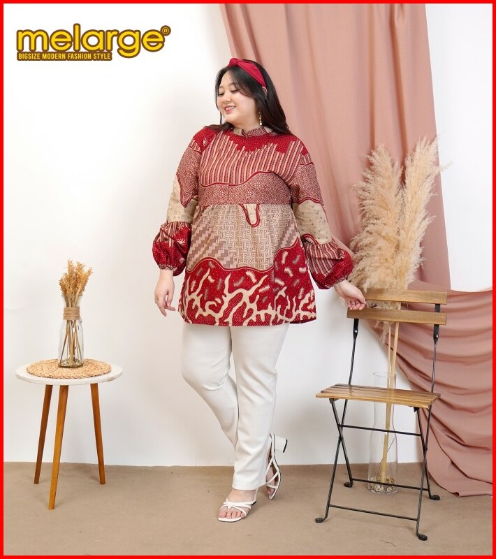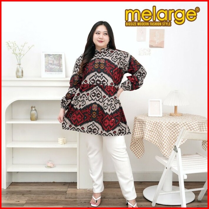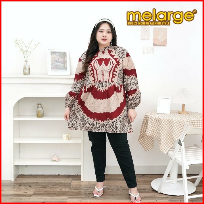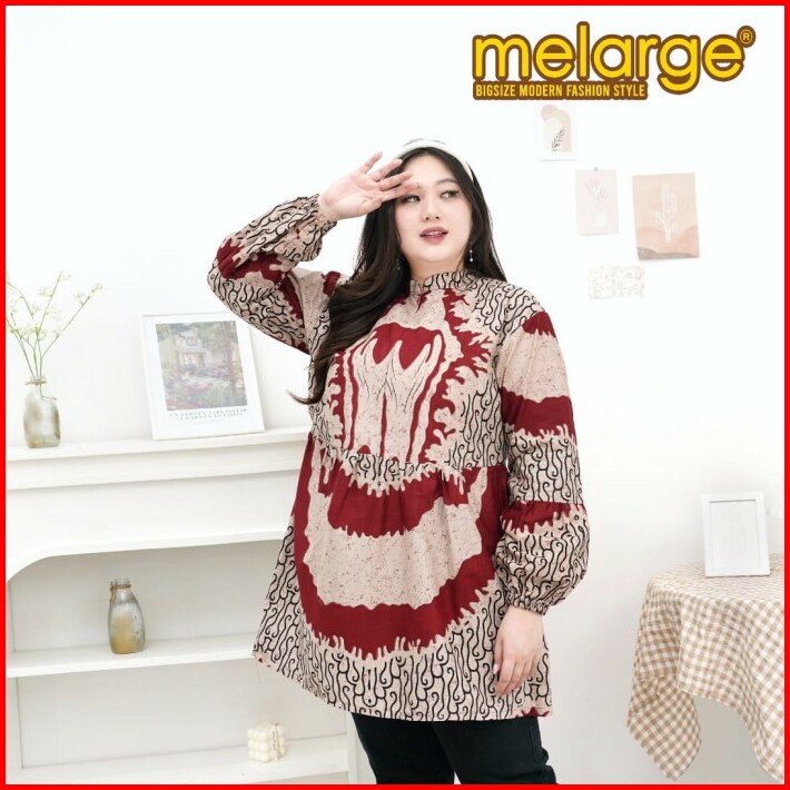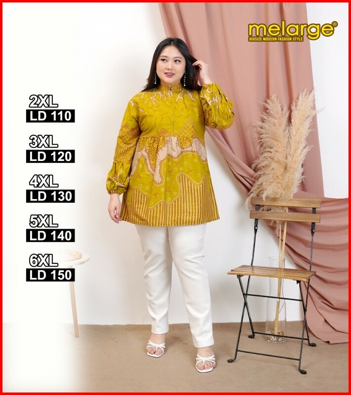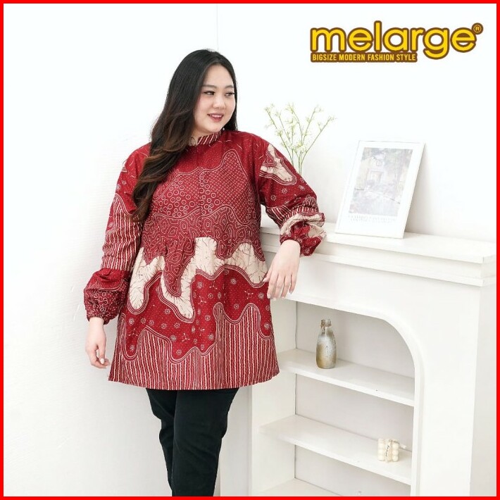 Melarge-kemeja Batik Wanita Jumbo Blouse Wanita Bigsize Baju Batik Perempuan Modern 3xl Ld 120 4xl Ld 130 5xl Ld 140 6xl