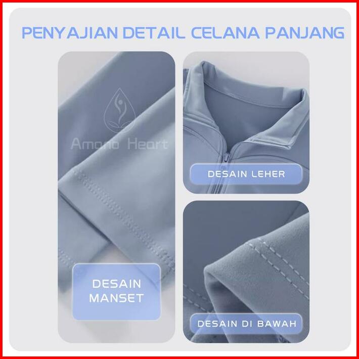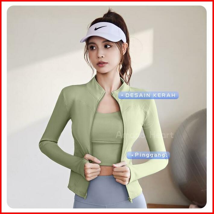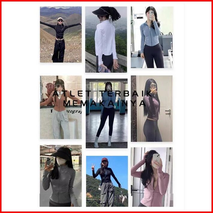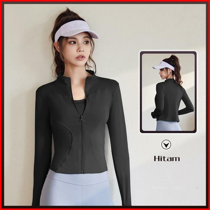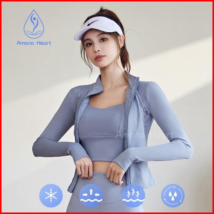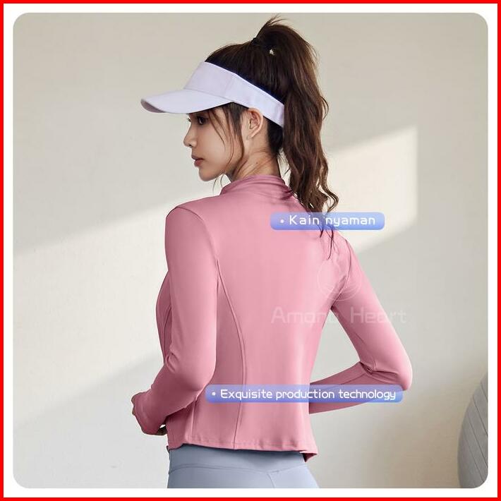Amanoheartlengan Panjang Jaket Olahraga Wanita Pakaian Olahraga Yoga Anti Uv Baju Upf50 Gym Atasan Kerah Pilates Jogging