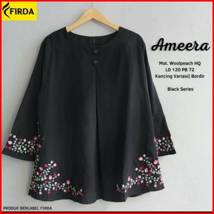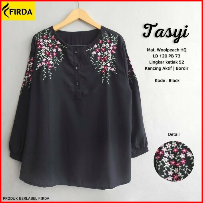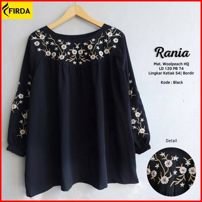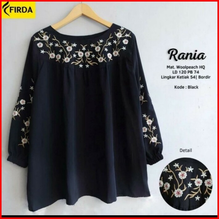 New Raniaa Blouse Jumbo Baju Atasan Wanita Big Size Hitam Black Series Bordir