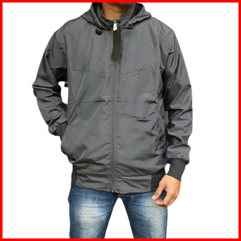 Jaket Parasut Polos Olahraga Sporty Pria Wanita Hitam M-xxl