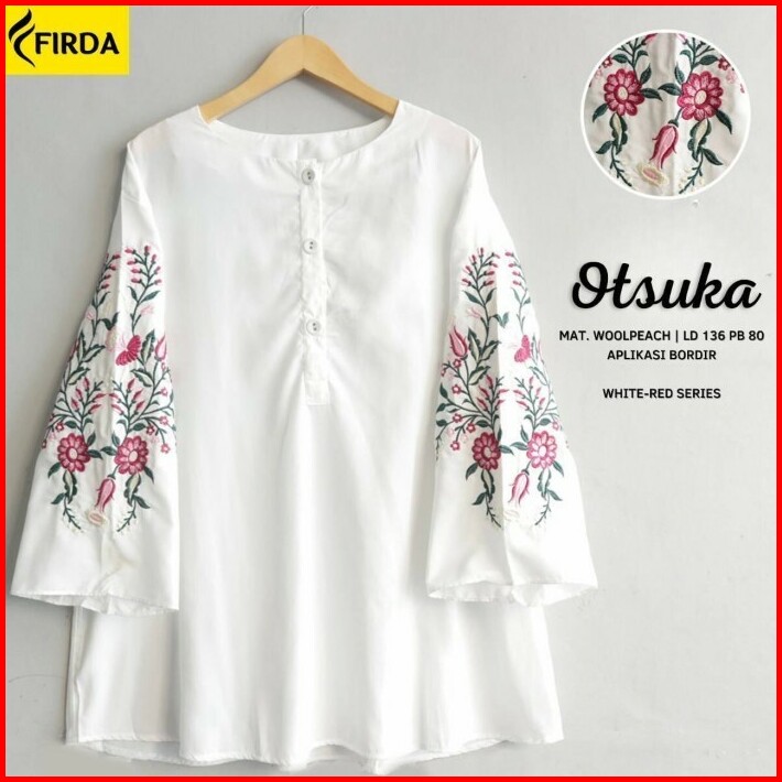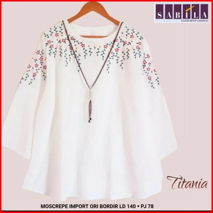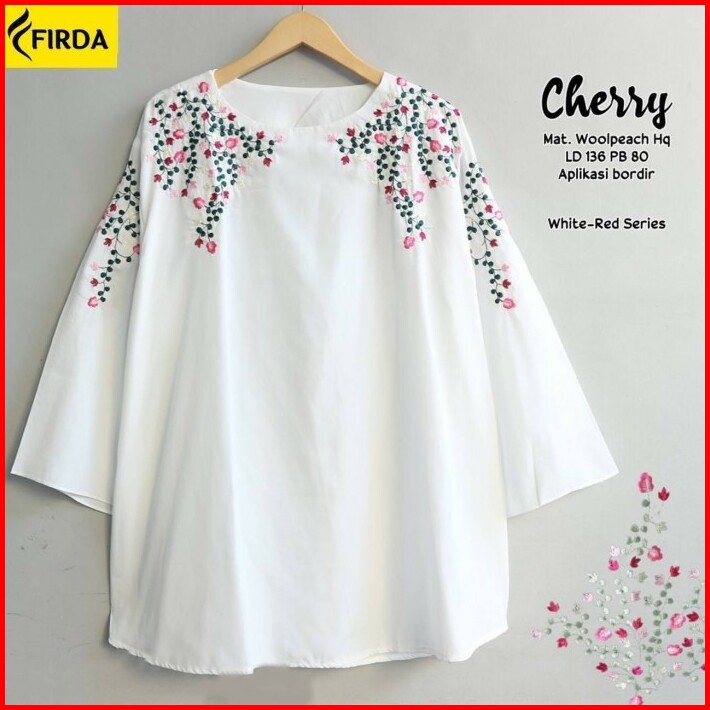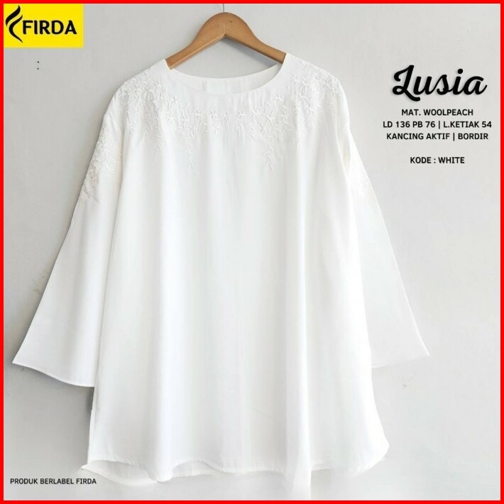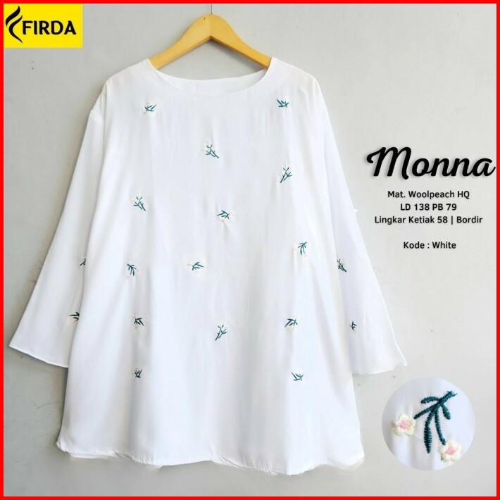 New Monnaa Blouse Atasan Wanita Jumbo Big Size White Putih Bordir